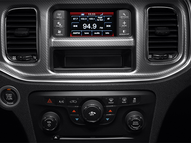 2014 Dodge Charger Quick Order Package 28G, Sport Appearance Group (18 x 7.5 Aluminum Chrome Clad Wheels, Rear Bodycolor Spoiler, and Rear Stabilizer Bar), Black Cloth, 1-Yr SiriusXM Radio Service, 17 x 7.0 Painted Aluminum Wheels, 4-Wheel Disc Brakes, 4.3 Touch Screen Display, 6 Speakers, ABS brakes, Air Conditioning, Alloy wheels, AM/FM radio, Anti-whiplash front head restraints, Audio Jack Input for Mobile Devices, Base Cloth Seats, Brake assist, Bumpers: body-color, CD player, Delay-off headlights, Driver door bin, Driver vanity mirror, Dual front impact airbags, Dual front side impact airbags, Electronic Stability Control, Four wheel independent suspension, Front anti-roll bar, Front Bucket Seats, Front Center Armrest, Front dual zone A/C, Front reading lights, Fully automatic headlights, Illuminated entry, Knee airbag, Low tire pressure warning, Occupant sensing airbag, Outside temperature display, Overhead airbag, Overhead console, Panic alarm, Passenger door bin, Passenger vanity mirror, Power door mirrors, Power driver seat, Power steering, Power windows, Radio: Uconnect 4.3 AM/FM/CD/MP3, Radio: Uconnect 4.3S AM/FM/CD/MP3, Rear anti-roll bar, Rear reading lights, Rear seat center armrest, Rear window defroster, Remote keyless entry, Remote USB Port, SIRIUS Satellite Radio, Speed control, Speed-Sensitive Wipers, Split folding rear seat, Steering wheel mounted audio controls, Tachometer, Telescoping steering wheel, Tilt steering wheel, Traction control, Trip computer, and Variably intermittent wipers.