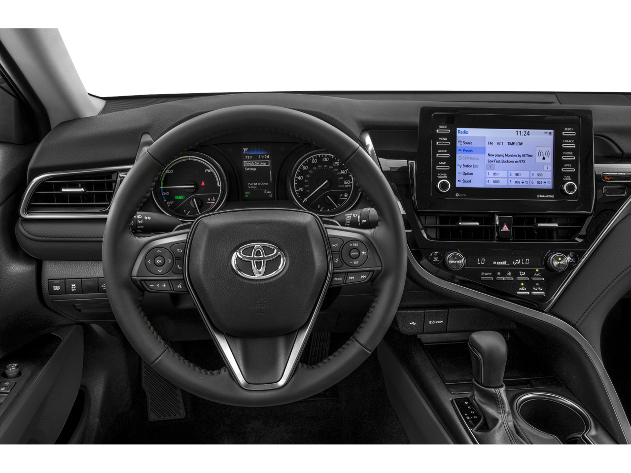 ** Bluetooth® **, ** BACKUP CAMERA **, ** LEATHER SEATS **, ** ADAPTIVE CRUISE CONTROL **, ** LANE DEPARTURE WARNING **, ** AUTOMATIC TRANSMISSION **, ** PARKING SENSORS **, ** BLIND SPOT MONITOR **, ** POWER SEATS **, ** KEYLESS ENTRY **, ** HI-FI SOUND SYSTEM**, ** APPLE CAR PLAY **, ** ACCIDENT FREE ON CARFAX **, ** LOCAL TRADE **, Cooper Certified, Camry Hybrid SE, 4D Sedan, 2.5L I4 DOHC 16V, eCVT, FWD, Midnight Black Metallic, Ash w/Fabric Seat Trim w/Sport SofTex, Alloy wheels, Wheels: 8.0J x 18 Machined Finish Alloy. THIS VEHICLE COMES EQUIPPED WITH THE FOLLOWING OPTIONS AND FEATURES: Camry Hybrid SE, 4D Sedan, 2.5L I4 DOHC 16V, eCVT, FWD, Midnight Black Metallic, Ash w/Fabric Seat Trim w/Sport SofTex, Alloy wheels, Wheels: 8.0J x 18 Machined Finish Alloy, 4-Wheel Disc Brakes, 6 Speakers, ABS brakes, Air Conditioning, AM/FM radio: SiriusXM, Apple CarPlay/Android Auto, Auto High-beam Headlights, Automatic temperature control, Brake assist, Bumpers: body-color, Delay-off headlights, Driver door bin, Driver vanity mirror, Dual front impact airbags, Dual front side impact airbags, Electronic Stability Control, Emergency communication system: Safety Connect with 1-year trial, Exterior Parking Camera Rear, Fabric Seat Trim w/Sport SofTex, Four wheel independent suspension, Front anti-roll bar, Front Bucket Seats, Front Center Armrest, Front dual zone A/C, Front reading lights, Fully automatic headlights, Heated door mirrors, Illuminated entry, Knee airbag, Low tire pressure warning, Occupant sensing airbag, Outside temperature display, Overhead airbag, Overhead console, Panic alarm, Passenger door bin, Passenger vanity mirror, Power door mirrors, Power driver seat, Power steering, Power windows, Radio data system, Radio: AM/FM Audio System, Rear anti-roll bar, Rear reading lights, Rear seat center armrest, Rear side impact airbag, Rear window defroster, Remote keyless entry, Security system, Speed control, Speed-sensing steering, Split folding rear seat, Spoiler, Steering wheel mounted audio controls, Telescoping steering wheel, Tilt steering wheel, Traction control, Trip computer, Turn signal indicator mirrors, and Variably intermittent wipers.